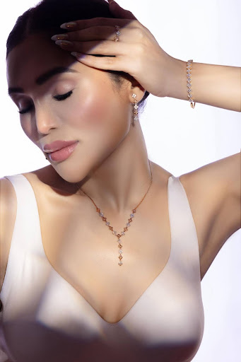 A cascade of blooming brilliance – the Florise Symphony Set is adorned with petite four-petal floral motifs, each set with glistening diamonds and crafted in warm rose gold. From the elegant Y-drop necklace to the bracelet, earrings, and ring, each piece is designed to flow like a floral melody – timeless, feminine, and exquisitely composed.